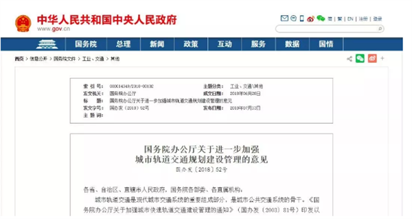 “新81号文”,即“国务院办公厅关于进一步加强城市轨道交通规划建设管理的意见 国办发[2018]52号”正式对外印发。